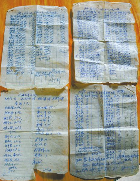 說是賬本,不過是4張油膩泛黃的紙,上面密密麻麻寫滿了姓名、金額。其中,最多的一張上有51個人,金額共是8252.09元。